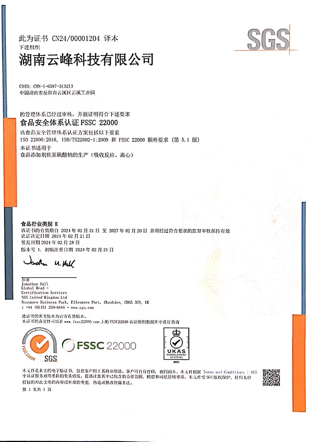 湖南云峰科技有限公司(以下簡稱云峰科技),是由長沙湘岳化工責任有限公司全額投資以生產焦亞硫酸鈉、亞硫酸鈉等亞硫酸鹽為主營業務的高科技企業,具有六十多年的生產歷史,同時也是焦亞硫酸鈉的國家標準制定參與者。在行業內具有很大的影響力。現有職工八十余人。具有優良的經營管理團隊和成熟的生產技術隊伍。由多位在化學、化工行業擁有豐富工作經驗的工程師及技術員團隊組建而成,致力于亞硫酸鹽產品的研發、生產和銷售。2020年公司對生產設備、安環設施及工業技術等進行了大規模的升級改造,使焦亞硫酸鈉和亞硫酸鈉的生產工藝更加先進,技術更成熟,產品質量更優良。無論在生產工藝、設備、產品質量、清潔生產、節能環保和員工素質方面,均處于行業領先地位。公司的主導產品“云峰”牌焦亞硫酸鈉,歷史悠久,深受國內外客戶信賴,產品遠銷東南亞、歐美、非洲、南美洲等20多個國家和地區,產品供不應求。